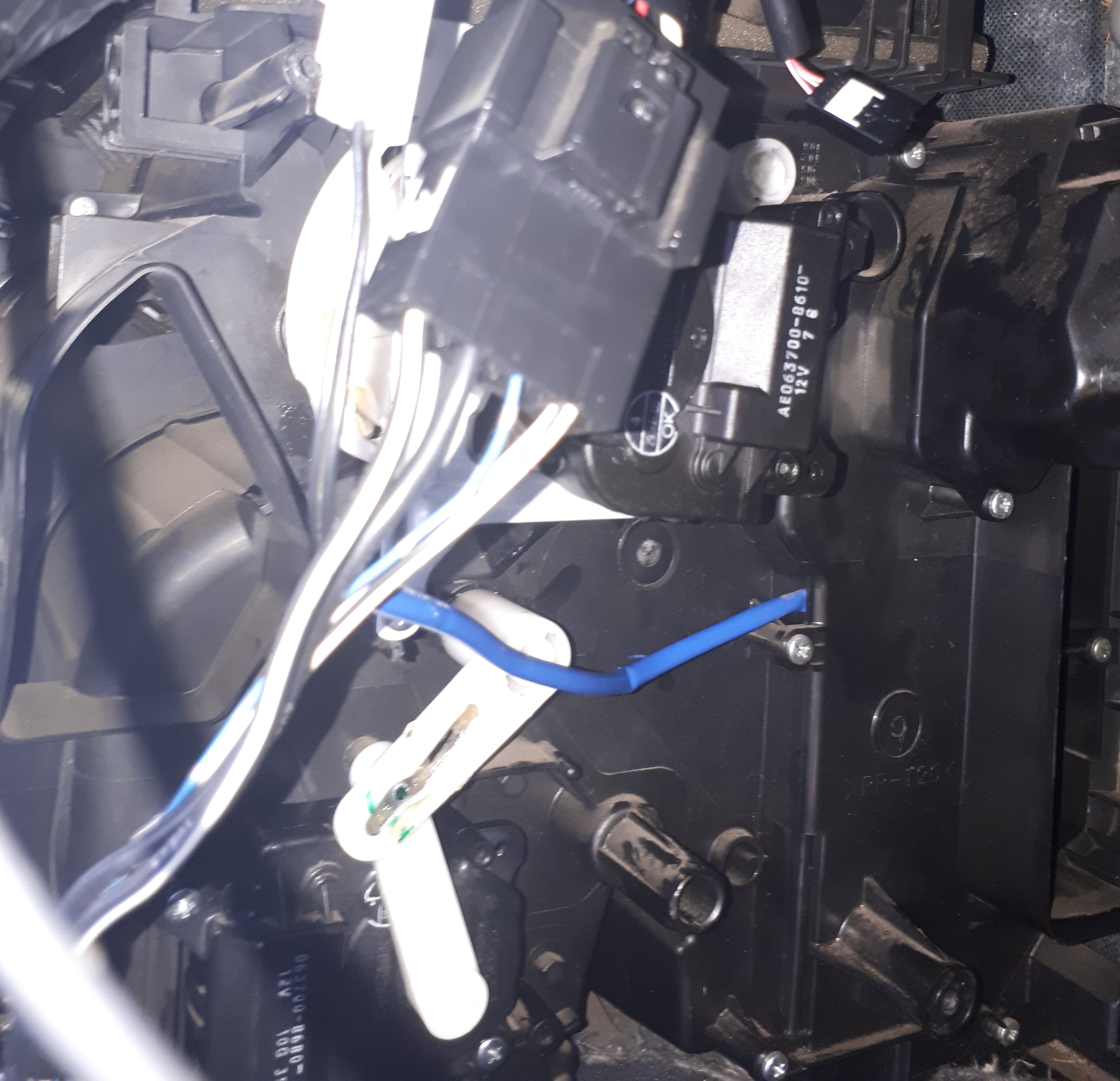 - две моторчета за позицията на струята на обдухване в дясната част на тялото на климатика, отляво на тялото на вентилатора на купето, плюс едно за рециркулацията върху лявата част на вентилатора на купето. Едно в лявата част за лявата зона.